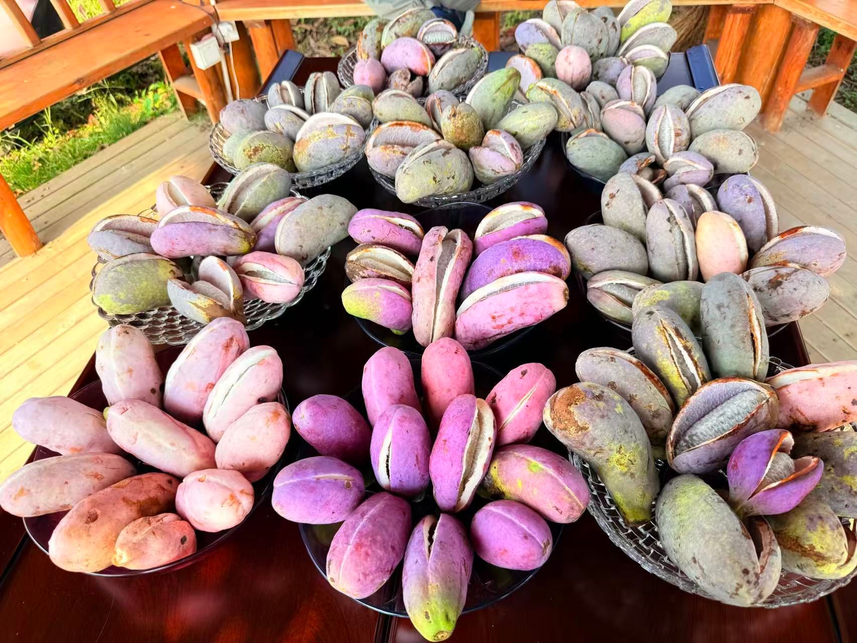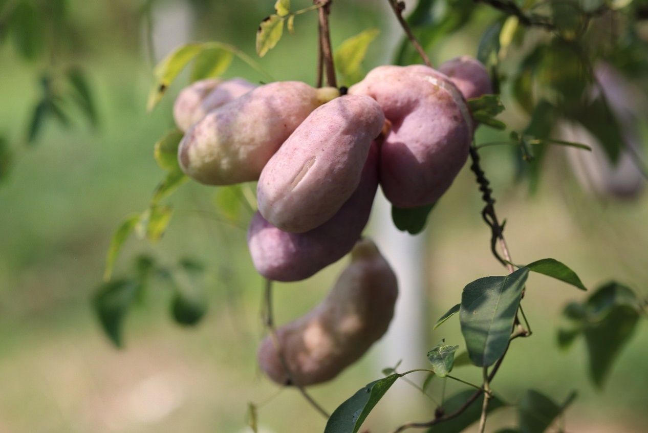周一下午的崇州基地,赤日烘烤着大地,空气里弥漫着泥味与稻香。同学们在基地与实验室管理处老师的带领下进行园区拉练,正当同学们略显疲惫时,一条挂满果实的走廊赫然出现在眼前——翠绿的藤蔓缠绕着支架,藤蔓间挂满了一个个椭圆形的果实,外皮是淡淡的紫,有些果实已经“咧开了嘴”,露出乳白色的果肉,清甜的香气随着微风飘来,瞬间驱散了大家的疲态。