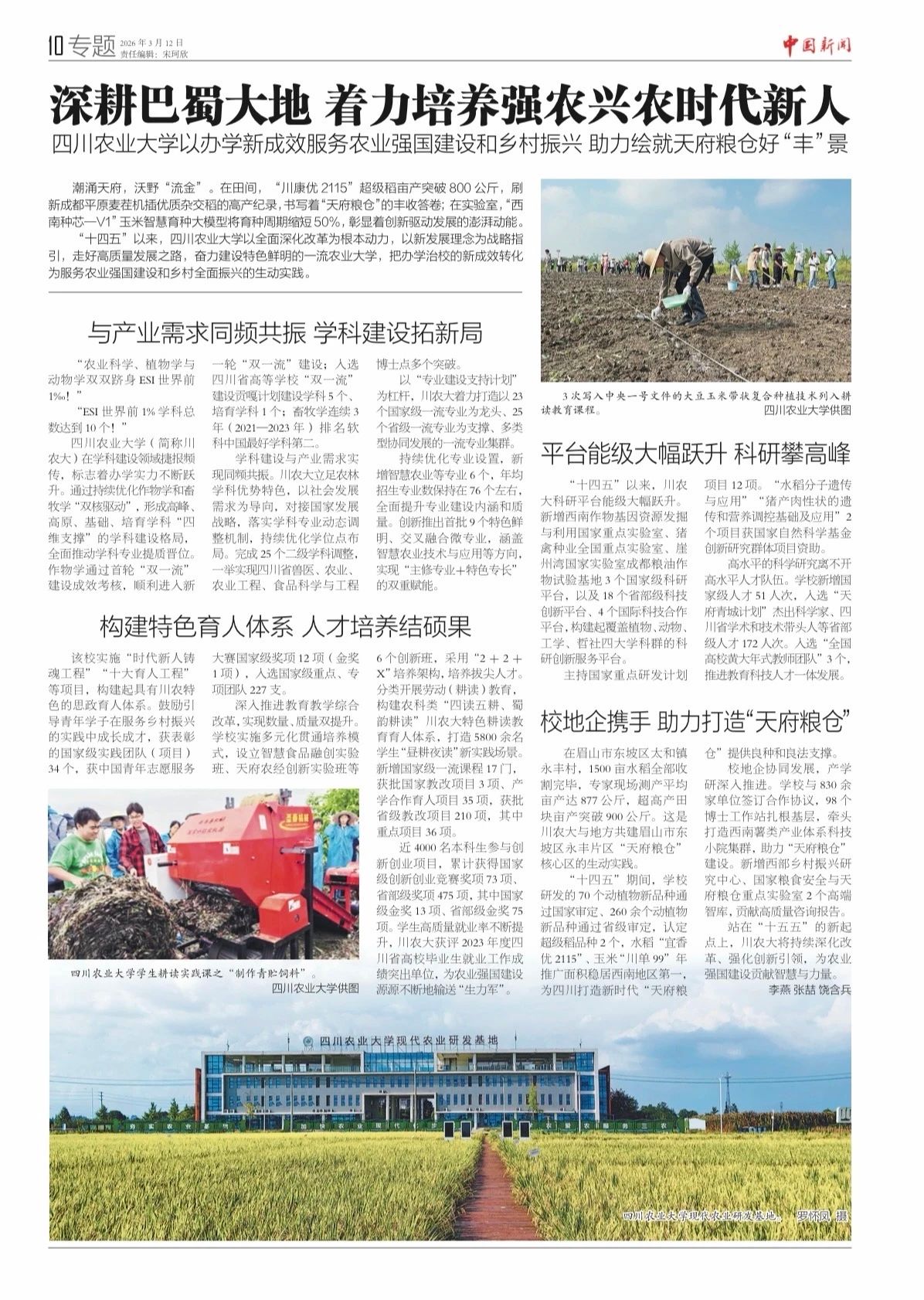 闻》报两会专刊聚焦我校,专版报道我校《深耕巴蜀大地 着力培养强农兴农时代新人》办学成果!