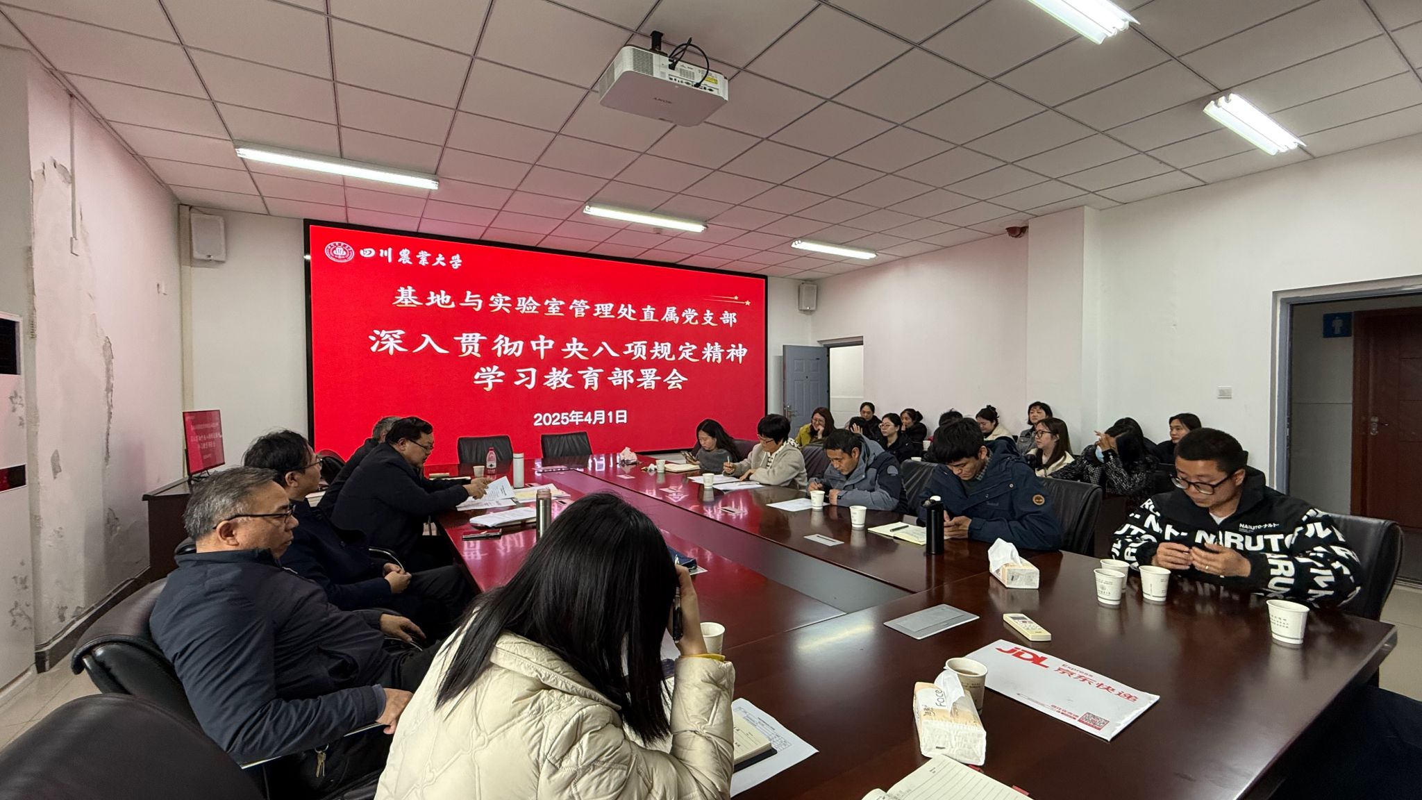 2024年4月1日下午,基地与实验室管理处直属党支部在崇州基地召开深入贯彻中央八项规定精神学习教育部署会。会议由直属党支部书记陈礼清主持,全体党员及教职工参加。